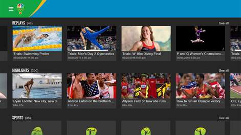 Watch all of the 2016 Rio Olympics and thousands of live sporting events airing on NBC, NBCSN and Golf Channel LIVE with the NBC Sports app. Download for your Microsoft platforms and devices now! STREAM LIVE EVENTS INCLUDING: 2016 Rio Olympics NFL Sunday Night Football and Thursday Night Football NHL Regular Season and Stanley Cup Playoff games PGA Tour Premier League (soccer) NASCAR Sprint Cup Xfinity races Formula 1 (F1) French Open (tennis) Indy Car Triple Crown (Kentucky Derby, Belmont Stakes, Preakness) Plus regional NBC streaming for Comcast Sportsnet that includes Golden State Warriors, Chicago Bulls, Boston Celtics, Washington Wizards, Sacramento Kings, and Philadelphia 76ers Sign in with your TV provider username and password to watch your favorite sports anytime, anywhere. ACCESSIBILITY: NBC Sports is proud to offer closed captioning support on shows with a “CC” icon in the player controls. Just touch to enable. The vast majority of live streaming content on the NBC Sports app will only be available to authenticated cable, satellite and telco customers via TV Everywhere. Further instructions are provided in the app settings section. NBC Sports video is only accessible in the USA and certain U.S. territories. The application requires a 3G, 4G, LTE or WiFi network data connection. Watching video over a 3G or 4G connection may affect your wireless data plan. Data charges may apply. Access to the NBC Sports app’s live video is determined by your TV provider and package and, in some instances, your Internet service provider. The providers below currently offer access to NBC Sports live video: *AT&T U-verse *Cablevision *Charter *Comcast XFINITY *Cox *DirecTV *DISH *Optimum *Time Warner Cable *Verizon FiOS TV *Plus many more providers